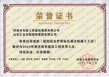 2020年度濟(jì)南市建設(shè)工程優(yōu)秀工法《旋挖鉆全護(hù)筒鉆孔灌注樁施工工法》