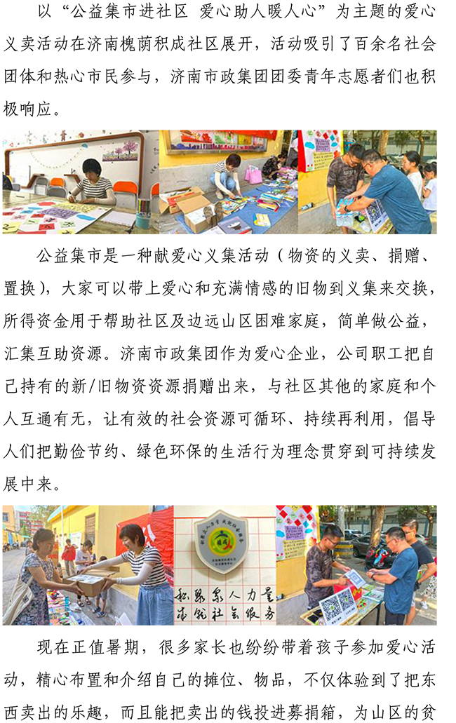 公益集市進(jìn)社區(qū) 愛心助人暖人心——濟(jì)南市政集團(tuán)團(tuán)委獻(xiàn)愛心活動