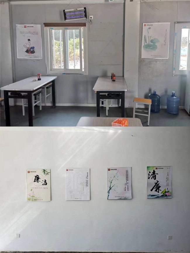 為持續(xù)推進黨風(fēng)廉政建設(shè),筑牢拒腐防變思想方向,營造廉潔文化工作氛圍,市政公司各項目部積極響應(yīng)集團號召,在辦公區(qū)、食堂等地方懸掛了廉政文化宣傳圖牌,打造廉潔文化空間,形成了一道靚麗的風(fēng)景線,有力地推動了公司廉政文化建設(shè)的深入開展。