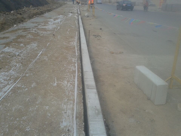 濟南市市政工程有限公司龍脊河工程進行路沿石安裝施工